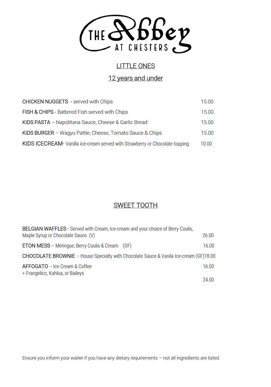Menu pricing and items are subject to change according to seasonal produce and availability. Feel free to contact us for further confirmation if this is a problem. Please also ensure you inform your waiter if you have any dietary requirements as not all ingredients are listed