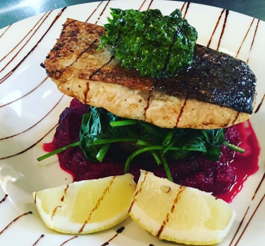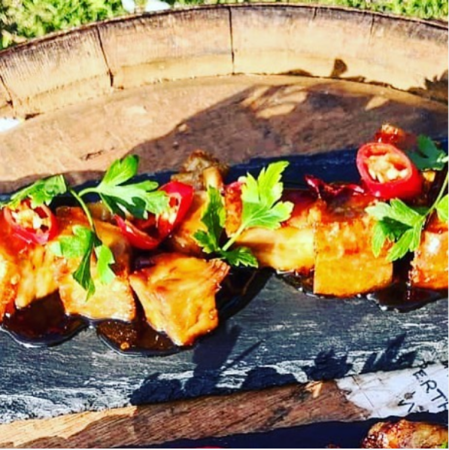 served with dirty potatoes. Royal blue potato, bacon & spinach and aioli